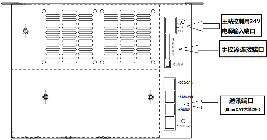 车床机械手控制系统驱控一体化EC-L5五轴系统,驱控一体箱体整体外观接线说明: